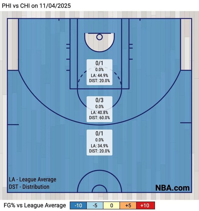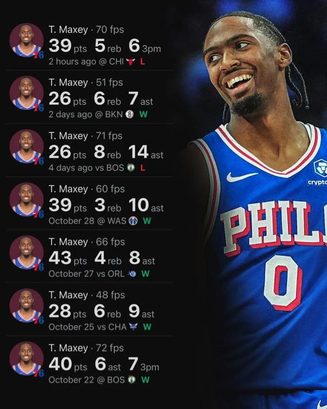 前三节还好,尤其上半场,恩比德拿了18分,他与马克西两人就合砍40分,而公牛全队得分不过56分,火力之猛确实难以阻挡。