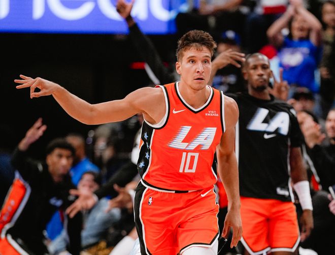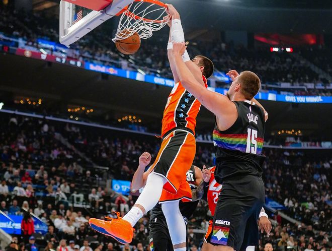 北京时间11月13日,NBA常规赛迎来一场重量级对话,快船主场迎战掘金。两支豪门本赛季命运截然不同,掘金此前战绩8胜2负排名西部第二,休赛期补充了瓦兰+小哈达威+布鲁斯布朗+约翰逊后,阵容太扎实了,场均124分联盟第二,进攻效率123.4联盟第一,防守效率110.2联盟第二,净效率值+13.2联盟第二,仅次于雷霆!当然,约基奇有了更多帮手,他本赛季得分数据有所下滑,但打得也确实更轻松和高效,约基奇本赛季PER值已经飙升到36.8,WS胜利贡献值达到3.1,按效率算,这已经是刷新历史纪录了。