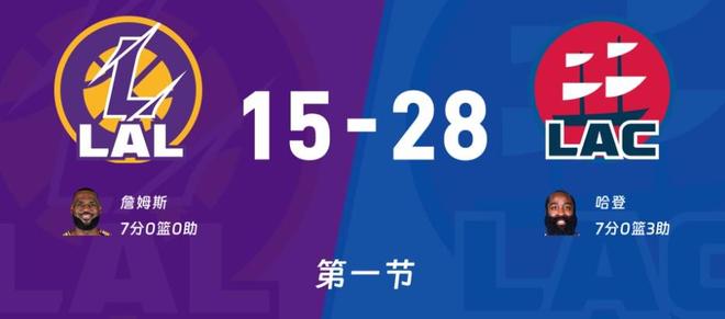 回到比赛湖人进攻难有起色,哈登助攻邓恩三分飚中,海斯禁区抛投不中,邓恩过来反篮轻松上进,克内克特三分继续铁,拉拉维亚前场篮板造成犯规两罚全中,快船终于有其他人得分了,东契奇强投三分不中,拉拉维亚又有前场篮板,再给到东契奇但是被切了,转换过来巴图姆三分自信投中,23-9快船领先14分湖人不得不暂停了。回到比赛湖人进攻依旧毫无起色,东契奇各种失误,罚球也不进!快船这边始终保持两位数领先,祖巴茨内线拼抢下落踩到詹姆斯脚上受伤离场了,不知道这会不会是比赛转折点,东契奇个人能力打成两分,桑德斯压哨三分没有,这样快船首节打完28-15领先湖人13分。哈登回来这支球队进攻流畅多了,反观湖人这边东契奇首节彻底梦游,进攻打不开还和裁判较劲,后面如果调整不回来,湖人这场比赛就危险了。
