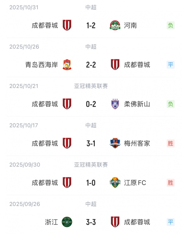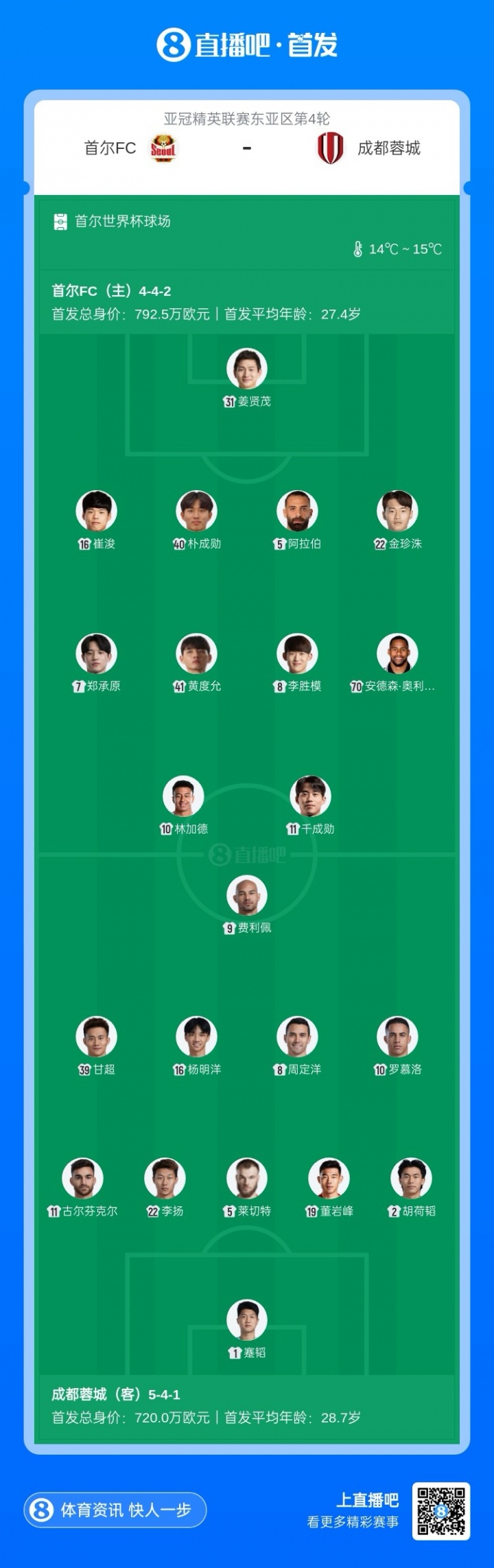 本轮赛前,成都蓉城1胜0平2负积3分排名东亚区第9,处于晋级区外;首尔FC则是1胜1平1负积4分位列第6。蓉城近期各项赛事3轮不胜。